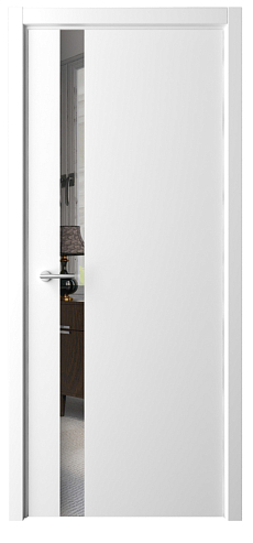 Дверь Геометрия-5 ширина 90 см Белый Эмаль Зеркало грей кромка В цвет полотна в Балашове