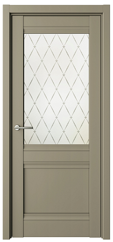В остекленном варианте, в качестве остекления используется матовое стекло с художественным рисунком "Гранд". Идея рисунка соединить стильный ромб и благородный цветок «Лилия».